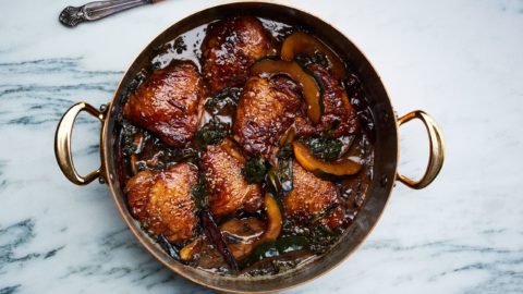 BRaised Chicken with Mustard Greens and Butternut