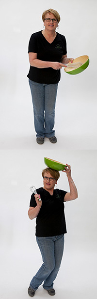 either cracking eggs, or rolling cookie dough, or mixing on the side.