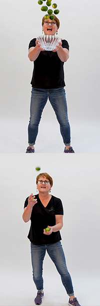 either cracking eggs, or rolling cookie dough, or mixing on the side.